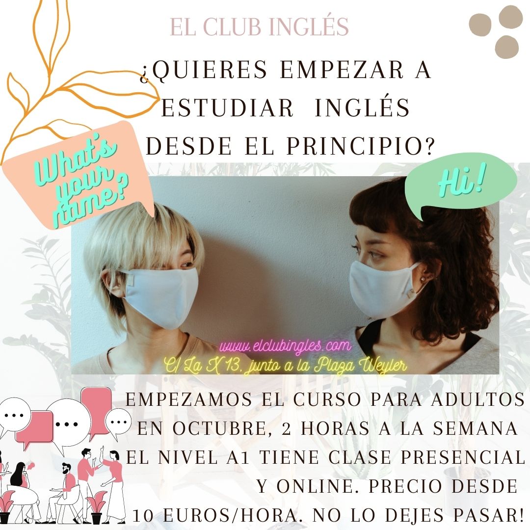 Comenzamos el curso académico para adultos de nivel básico A1. Los horarios son lunes y miércoles de 10.30 a 11.30 hrs. Las clases para este curso pueden ser presencial (con plazas limitadas) y online y son en grupo reducido. El precio es de 55 euros al mes, sin matrícula. La duración estimada de aprendizaje del nivel A1, es de un año. El siguiente nivel sería el nivel elemental A2. Disponemos de una hora de tarde, los lunes de 15.00 a 16.00 hrs con un nivel A1/A2 y el precio es de 35 euros al mes. Si estás convencido de aprender inglés, participa en nuestras clases. Nos encanta recibir gente con ganas, que aporte interés y motivación a nuestra comunidad.
