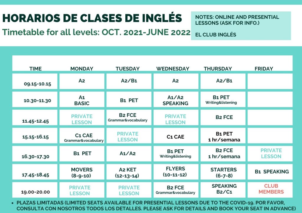 Te adelantamos los horarios para el nuevo curso, aunque aún pueden sufrir algún cambio. Si estás interesado/a, contacta con nosotros. Te informaremos de todo lo que ofrecemos!